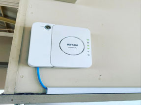 無線LANルーターを設置し、Wi-Fiの電波が届く範囲を構築します。多くの場合、ルーターまでの有線配線も同時に