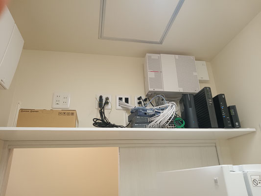 愛知県豊川市、Tクリニック様で音響設備工事の様子です。